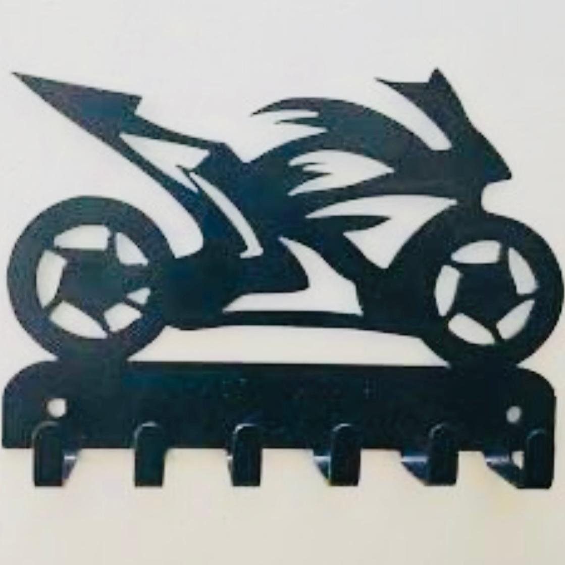 2D Sports Bike Keychain Holder | Wall-Mounted Metal Rack for Keys & Accessories