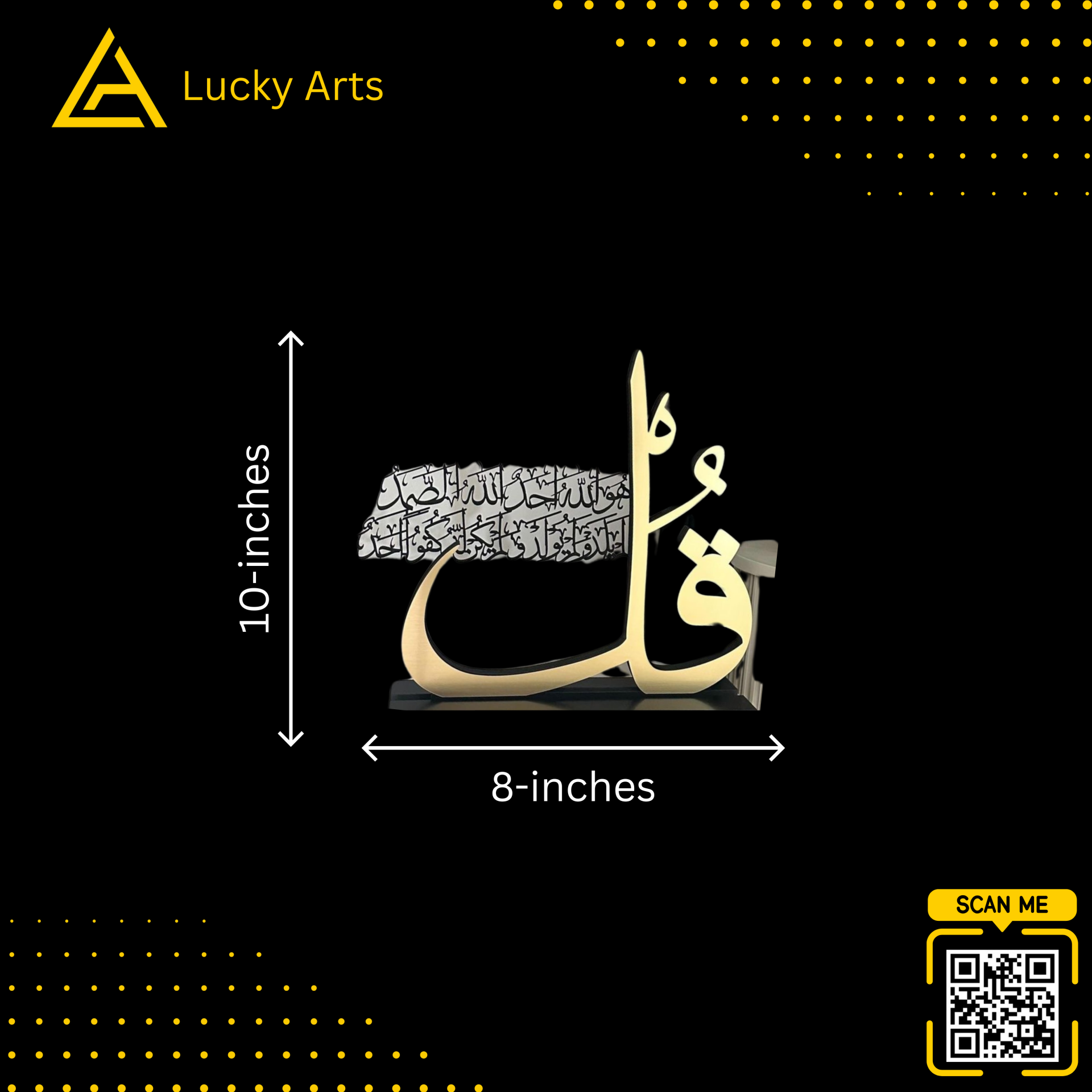 • Premium Craftsmanship: Each calligraphy piece is made from high-quality acrylic with a metallic gold or silver finish, mounted on a durable wooden base.