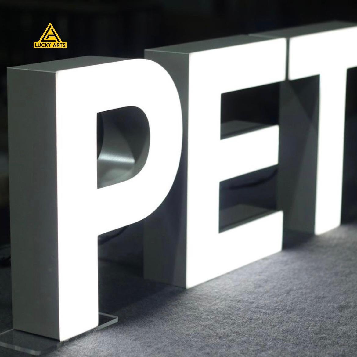 • Back-lit (halo effect): Subtle glow behind letters for an elegant look