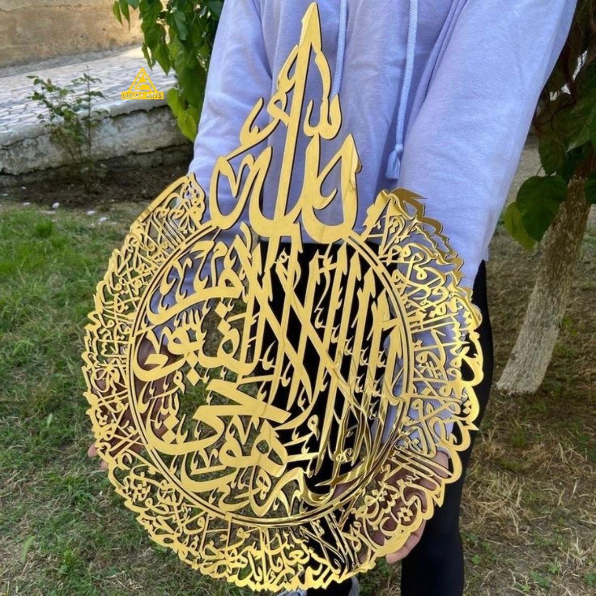 Ayat-ul-Kursi is known as the Throne Verse, offering spiritual protection, peace, and divine blessings when recited or displayed. It is one of the most important verses in the Qur’an, often recited for barakah, security, and mindful reflection.