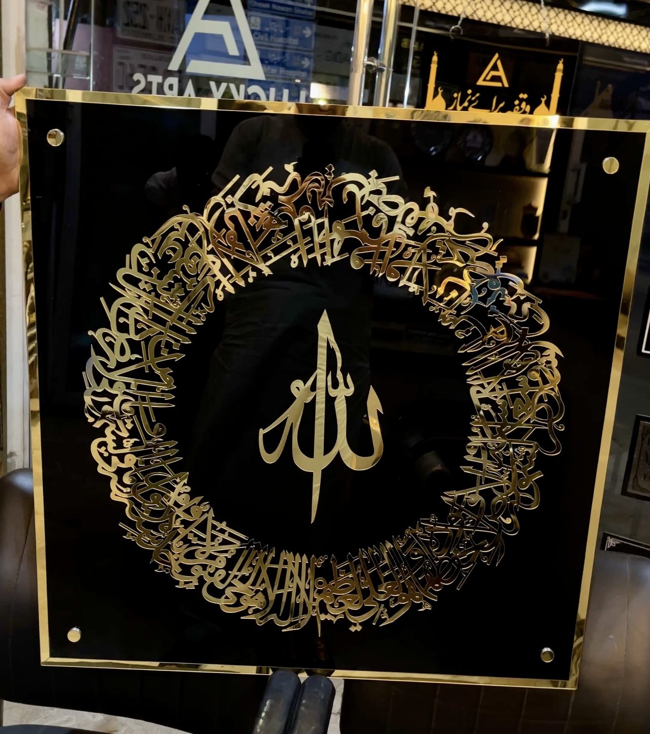 Elegantly crafted, our Ayatul Kursi Wall Frame from Lucky Arts is a stunning piece of art that adds a spiritual and decorative touch to your home. Featuring the sacred Ayatul Kursi verse, this frame is made of high-quality golden mirror acrylic, beautifully contrasted by a black acrylic base, creating a captivating visual appeal.