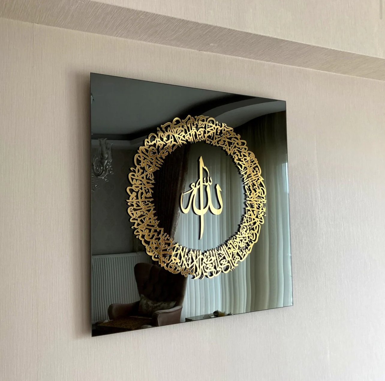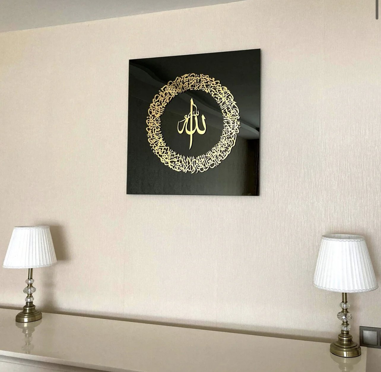 • Material: Black MDF Plywood Base with Golden Mirror Acrylic Ayatul Kursi