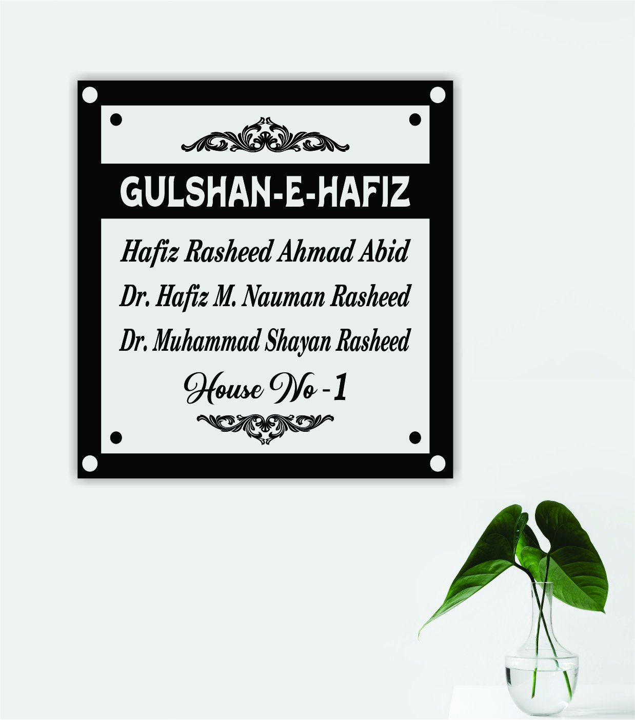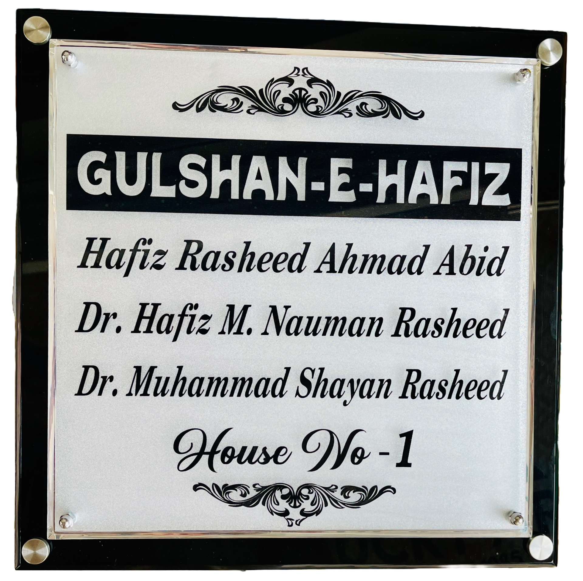 Introduce a touch of luxury to your entrance with our Shiny Diamond Double Acrylic House Name Plate from Lucky Arts. This exquisite name plate features a double layer of 5mm acrylic, enhanced with a diamond glossy sheet and bold black printing. The shimmering finish and elegant design make it a standout piece, perfect for adding a sophisticated flair to any home or office entrance.