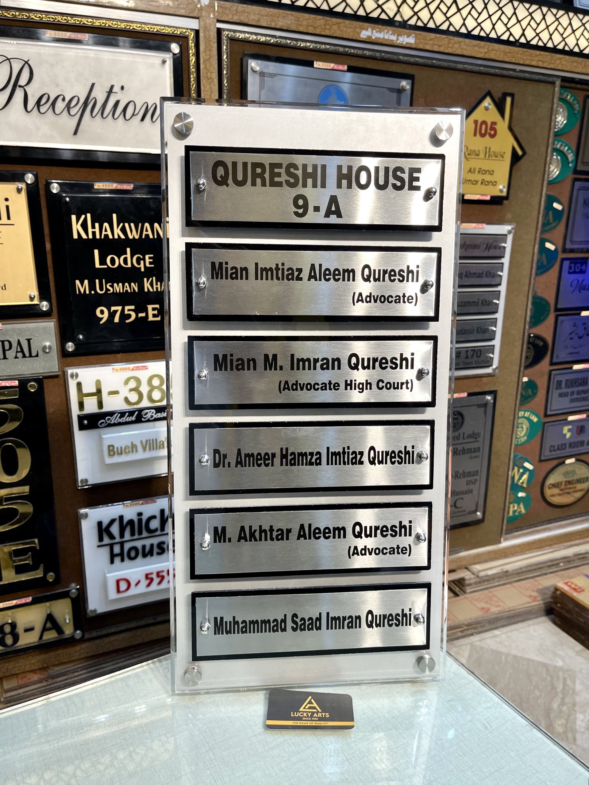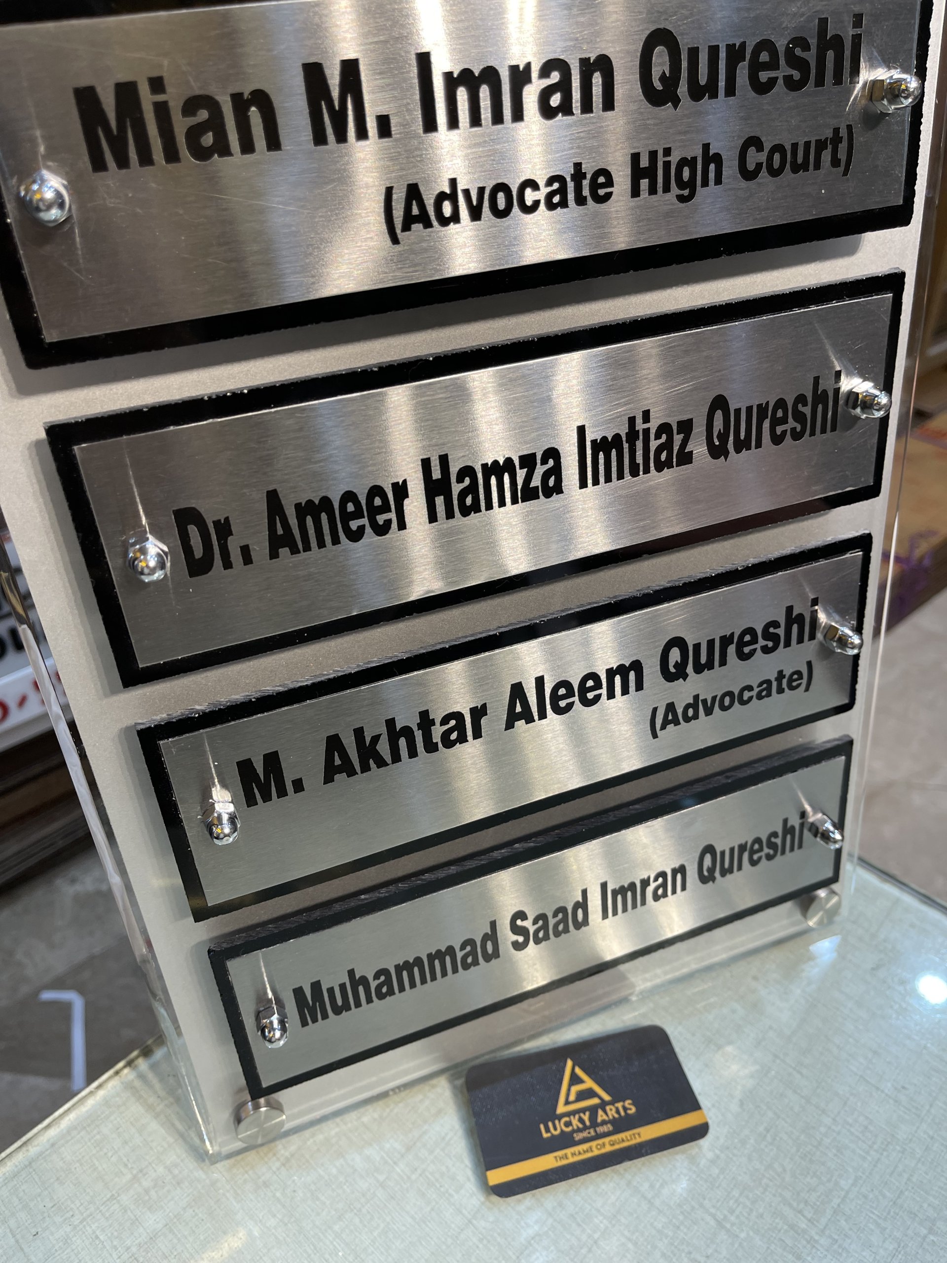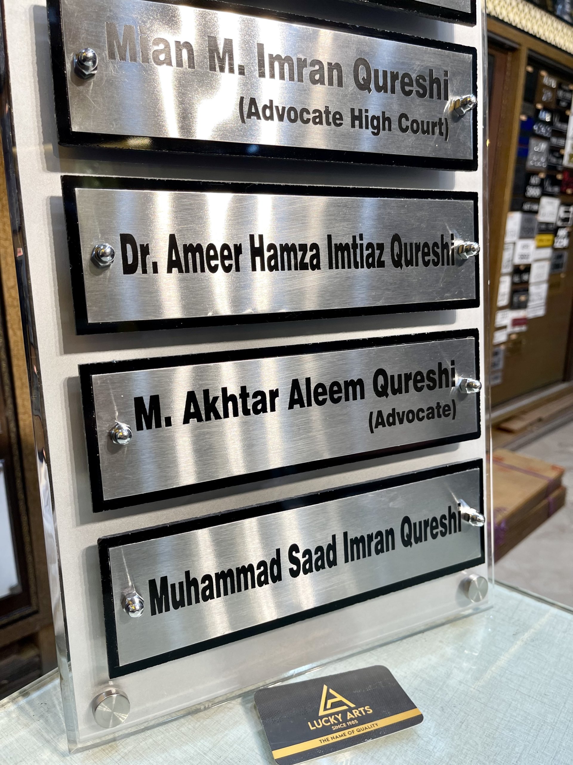 Introduce a modern and elegant touch to your home’s entrance with our Engraving Steel Pati Style House Name Plate from Lucky Arts. This exquisite name plate is crafted from high-quality stainless steel, intricately engraved, and paired with a durable acrylic base. Mounted with spacers, it creates a striking floating effect that enhances the overall aesthetic of your property.