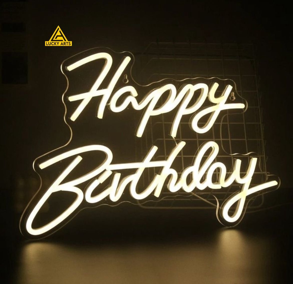 This neon sign features popular phrases like “Happy Birthday”, “Let’s Party”, or customizable names and ages, all rendered in flowing, playful neon script or block letters. It's available in bright, eye-catching colors like pink, blue, white, or multicolor.
