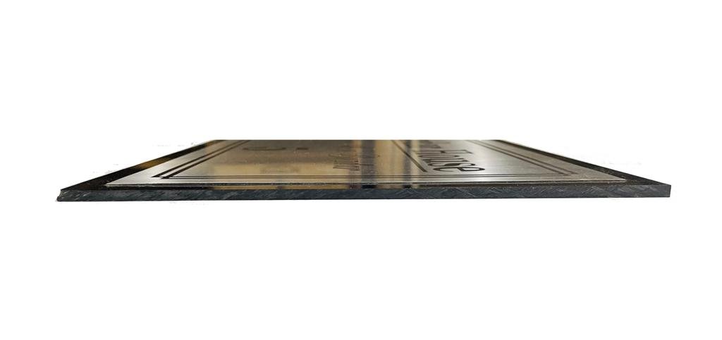 • Material: High-quality silver stainless steel engraving with a 5mm black acrylic base