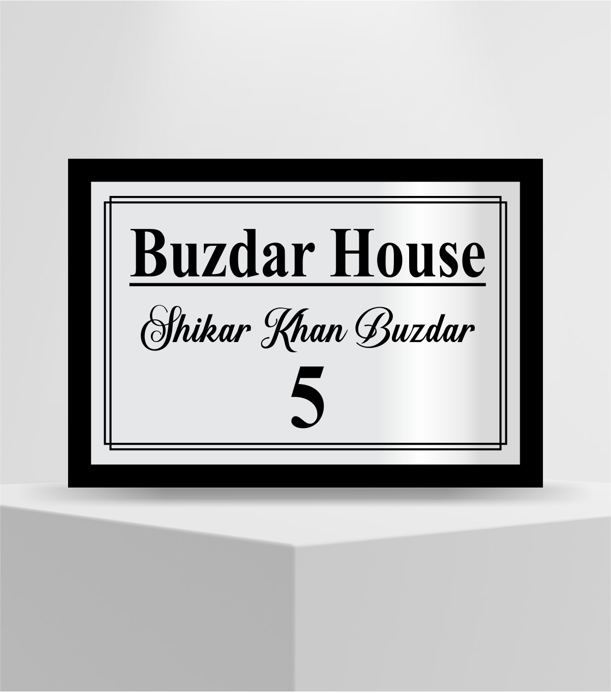 Introduce timeless elegance to your home with our Silver Steel Engraving Customise House Name Plate from Lucky Arts. Expertly crafted with high-quality silver stainless steel engraving and a 5mm black acrylic base, this name plate offers a perfect blend of durability and sophistication. Personalize it to make a distinctive statement at your entrance, reflecting your unique style and taste.